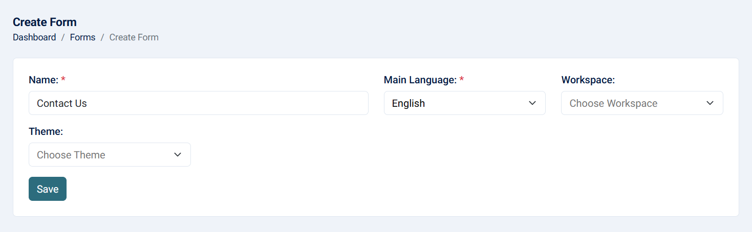 - Name: Enter a name for the form (required, maximum of 255 characters).