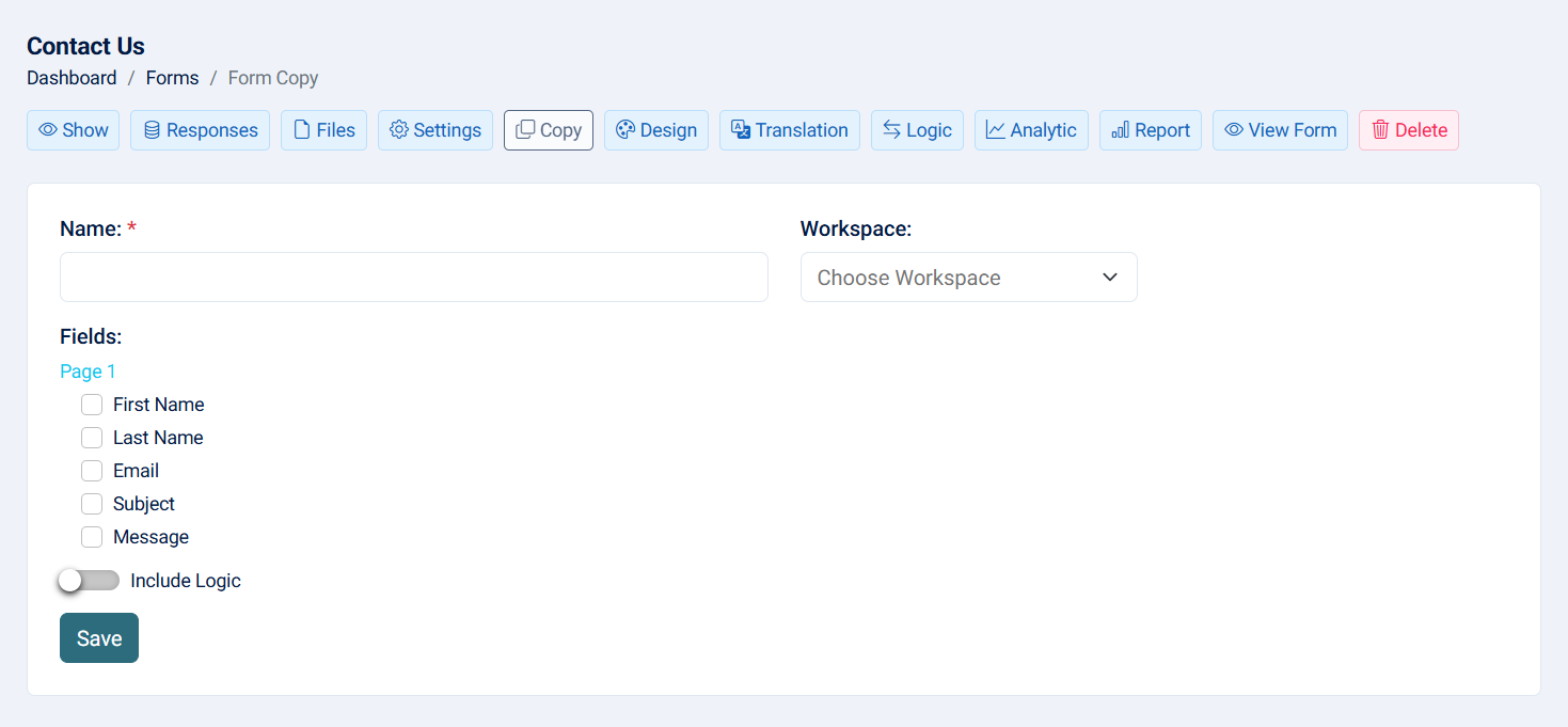 9- Copy: This action allows you to duplicate an existing form and create a new one.