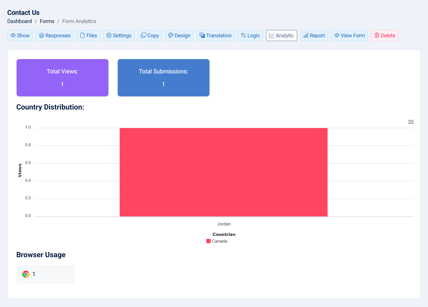 11- Analytics: This action allows you to view who view and submit the form as well their countries and browser type.