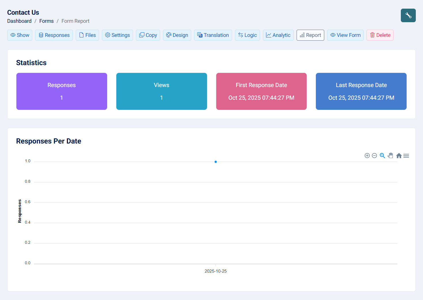 - Responses Per Date: View a chart showing how many users submitted the form each day.