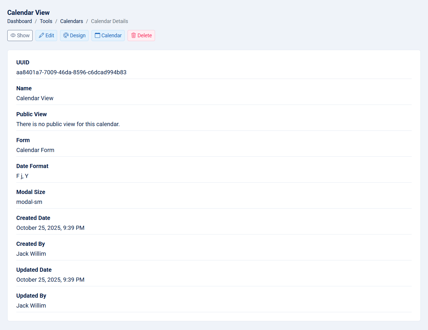 - Created By: The creator of the calendar.